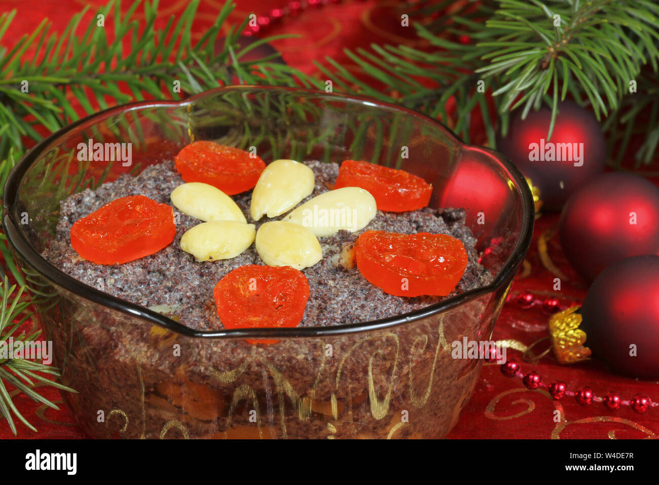 The traditional christmas poppy seed cake consists of thin layers of dough and thick layers of sweet poppy seed cream.